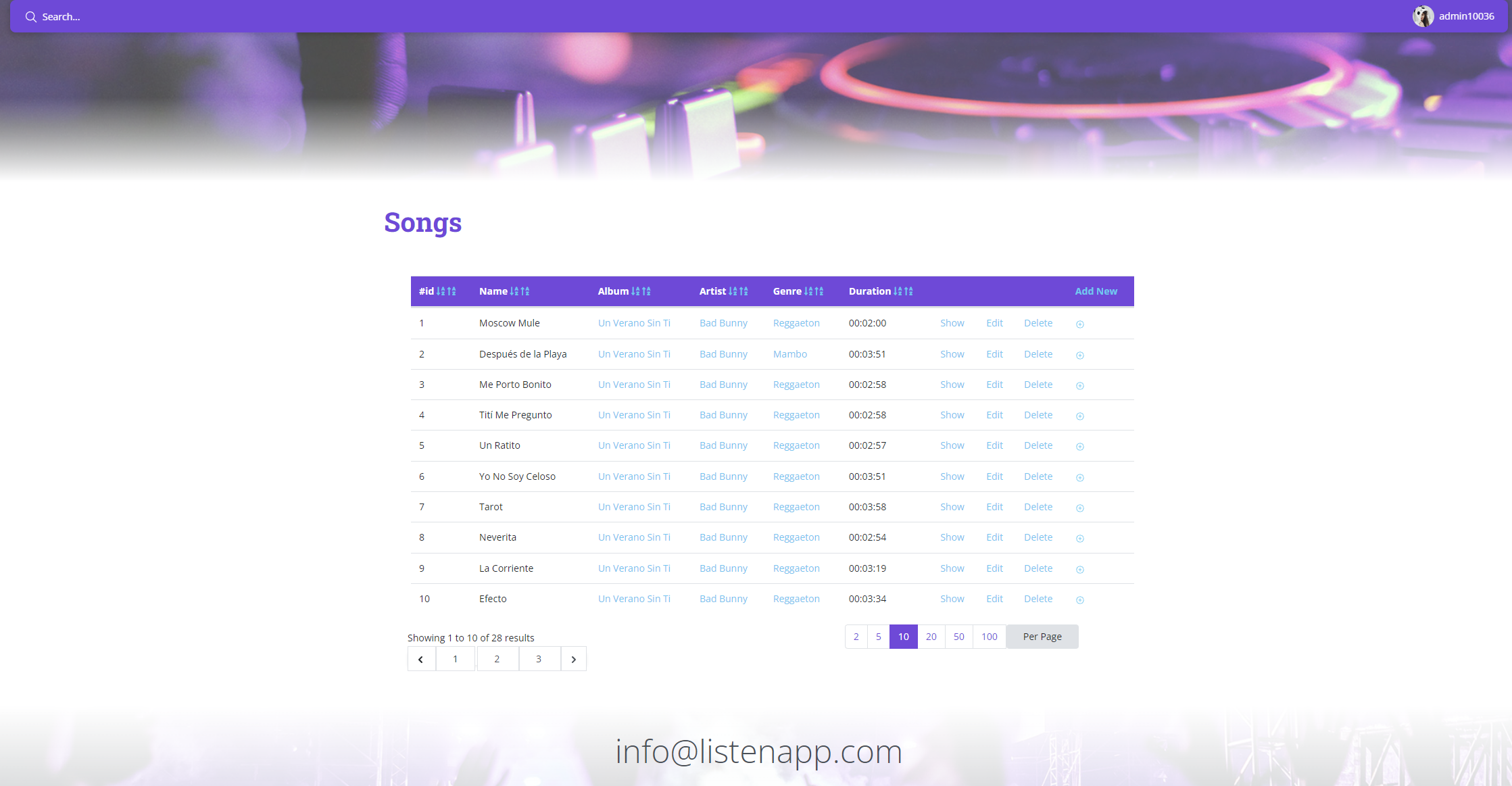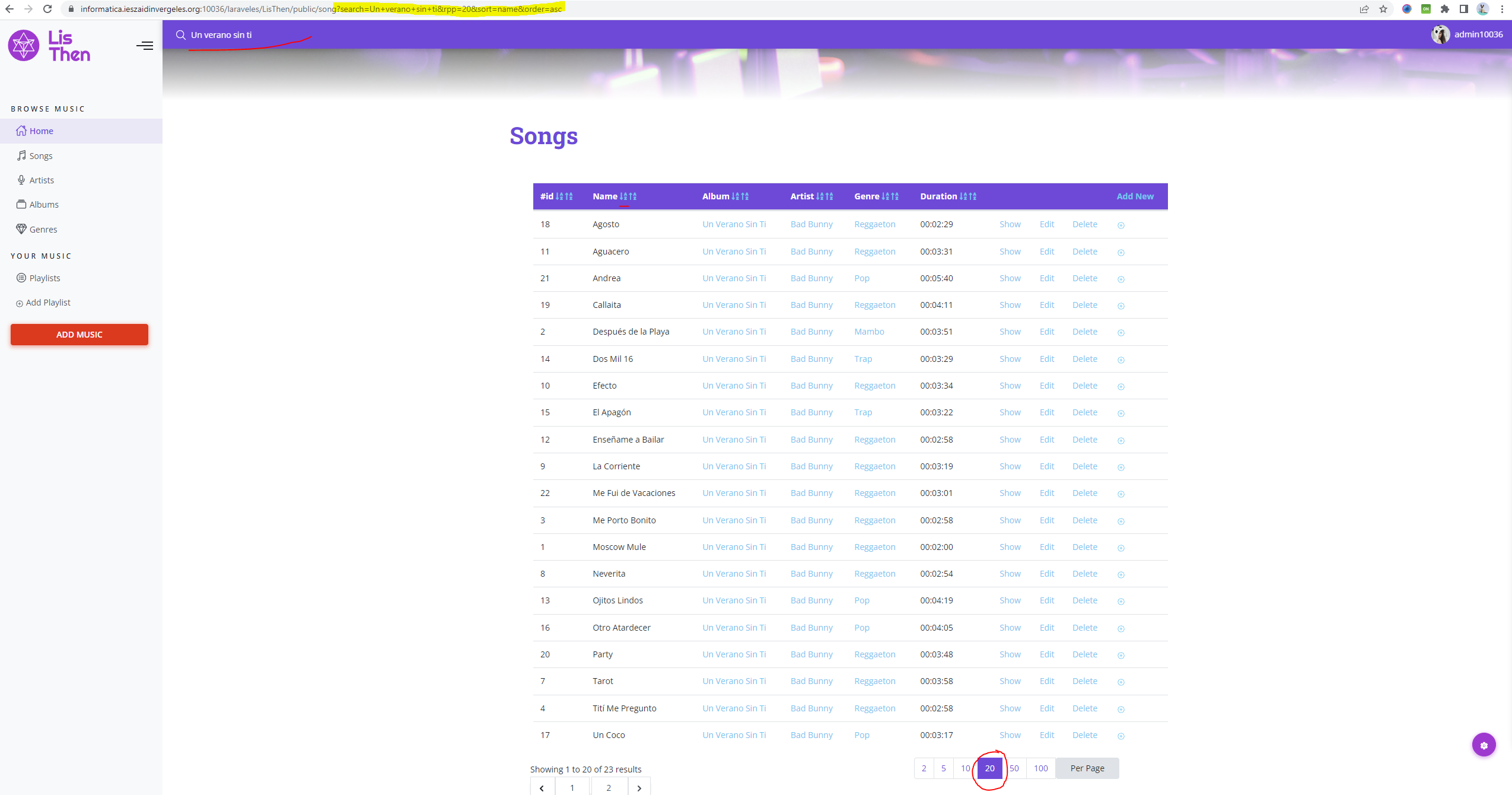 Sample: Search by an album name, order by name asc, 20 results per page: