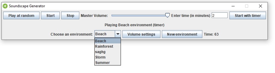 Soundscape Generator is a free sound mixer for composing random ambient soundscapes. Create your own ever-changing ambient noise or sound environments! This is a sound landscape for all, which is highly customisable to your specific needs! This product is great for those of you that are stressed, frustrated and tensed. Specially recommended for academic students and staff members who just want to relax and unwind after a long day. It's also perfect for relaxation, meditation and yoga. With the Soundscape generator you can go from your office straight to the beach or the rainforest with a click of a button. People spend hundreds of pounds on ambient sound machines of varying qualities to achieve what this program can do easily with your own computer and some speakers for free.