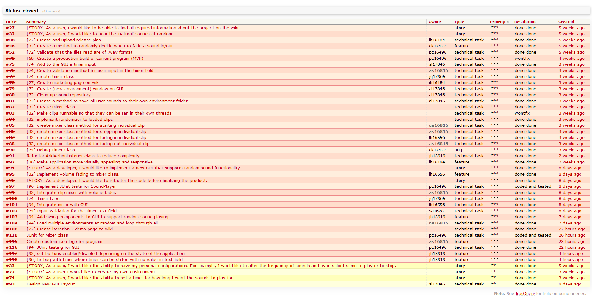 A Java collaborative project. This program allows the user to play ambient background sounds at random or at command. Full user interface is implemented and provides all functionality requested by the project client. Project management done in Trac.
