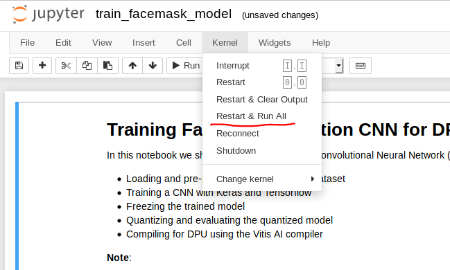 Inside the Test Notebook folder, we will enter the file "Facemask-ZCU104.ipynb".