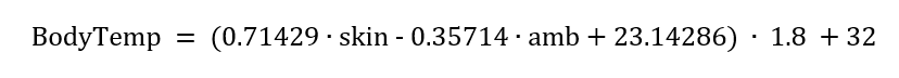 To calculate the real temperature of the body, a multivariable linear regression model was performed to obtain an equation that would relate the temperature of the back of the hand and the ambient temperature, to obtain the real internal temperature of the body.