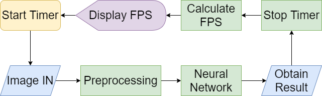 Because all the codes display the result on screen, which takes a lot of time, the calculation of the FPS was carried out with the following algorithm.