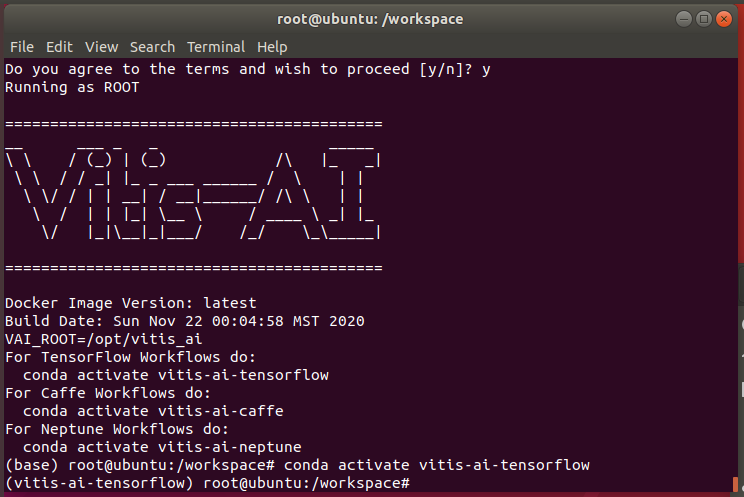 sudo bash docker_run.sh xilinx/vitis-ai-cpu:latest