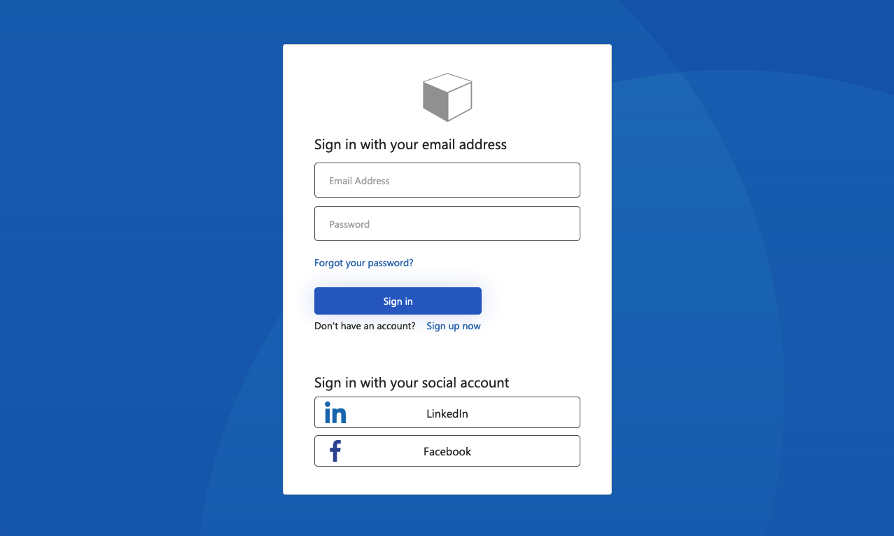 Example of the Ocean Blue template rendered on sign up sign in page: