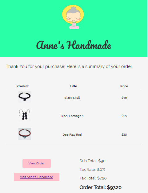 Emails are sent to customers with a "Thank You" and order invoice when a transaction is complete. Users also recieve emails when they signup or request a new password. Emails are templated with MJML and sent with Nodemailer and SendGrid.