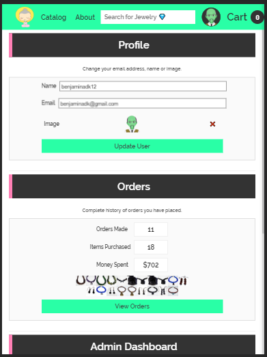 Admin has ability to add/edit/delete products, including uploading images and toggling shipped status. React Tables helps sort, filter and organize inventory and sales data.