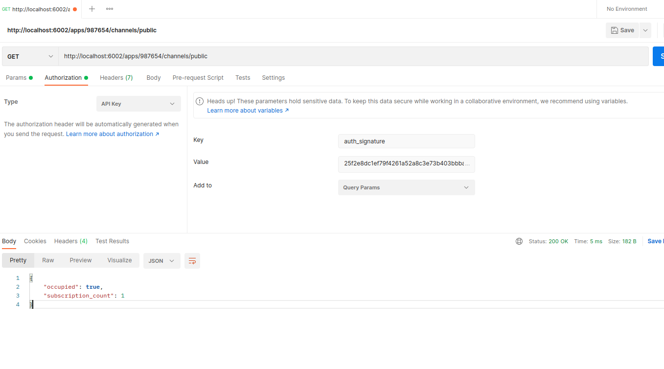 Hello , this is not documented so you need to discover it the hard way . $this->get('/apps/{appId}/channels/{channelName}', config('websockets.handlers.fetch_channel'));The controller responsible for this route is FetchChannel : So you can make an HTTP GET to the url : Note: I only tested this using postman. i wish this will help you . |