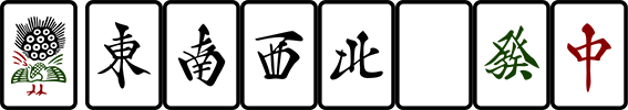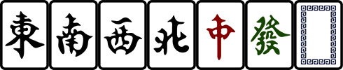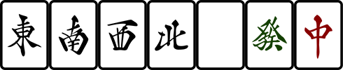 日麻中有用 p s m 来表示饼子, 条 (索) 子, 万字的习惯, 并且字牌按照 东南西北白发中 的顺序编号后用 z 表示, 比如 5z 表示白. 但是中国模式下, 字牌的顺序并不一样, 顺序为 东南西北中发白