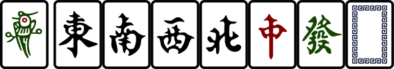 可以在整个字符串的后面加上参数 country=cn 或者 country=jp 来说明希望生成 国标/日麻 图案, 如果不做说明默认是日麻图案, 例如以下分别是 3白?country=cn 和 3白?country=jp, 不添加此参数时默认为日麻图案.