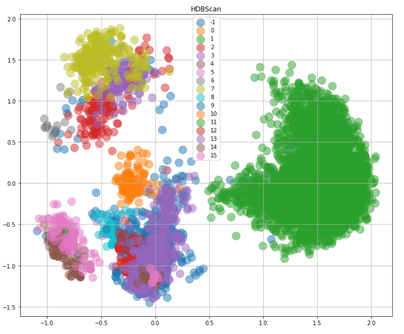For HDBScan we did trial and error with the cluster size and min sample parameters to get 15 clusters.