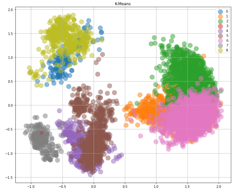 We then extracted the data points in each of the top clusters after clustering using HDBScan and K-Means respectively to analyse the effectiveness of the clustering methods.