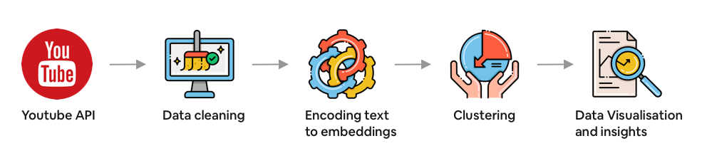 - Pulling data using Youtube API: We had the option to either scrape the specific Youtube site using beautifulSoup (with some potential legal concerns) or extract data through the Youtube API. In this case, we assessed that the latter would be more robust, and our procedure is described in detail here.