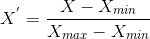- If the value of X is between the minimum and the maximum value, then the value of X’ is between 0 and 1