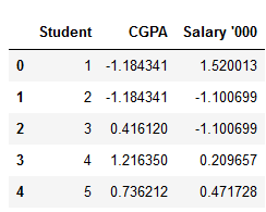 For example, let’s say we have data containing high school CGPA scores of students (ranging from 0 to 5) and their future incomes (in thousands Rupees):