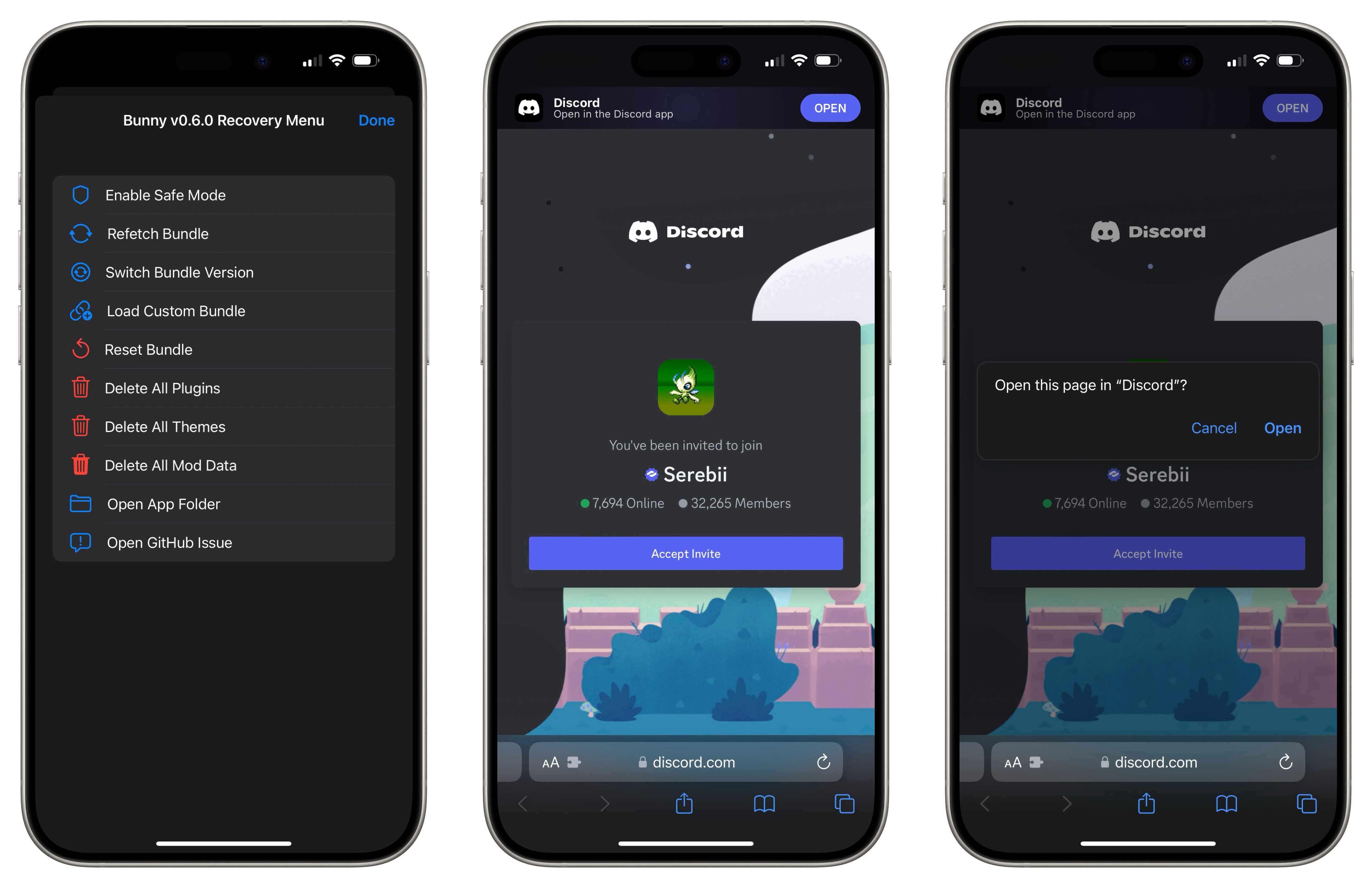 Tweak to inject Bunny and OpenInDiscord into Discord. Forked from VendettaTweak and modified to match with BunnyXposed's behavior.