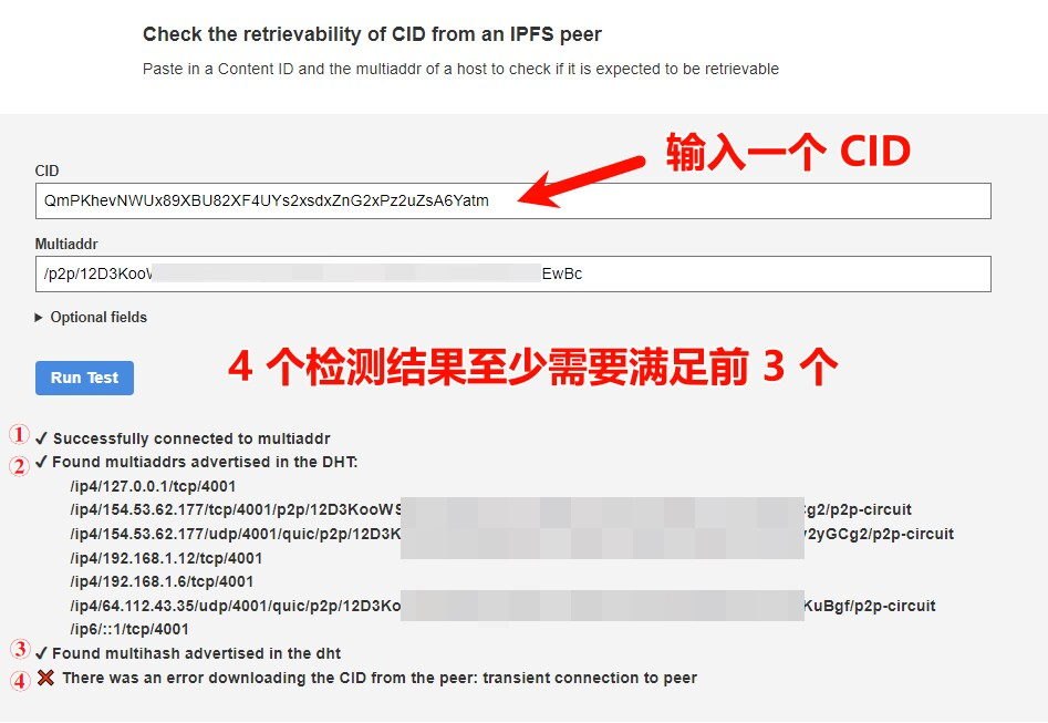 此网址可以检查自己的 IPFS 网络的可用性: https://check.ipfs.network/