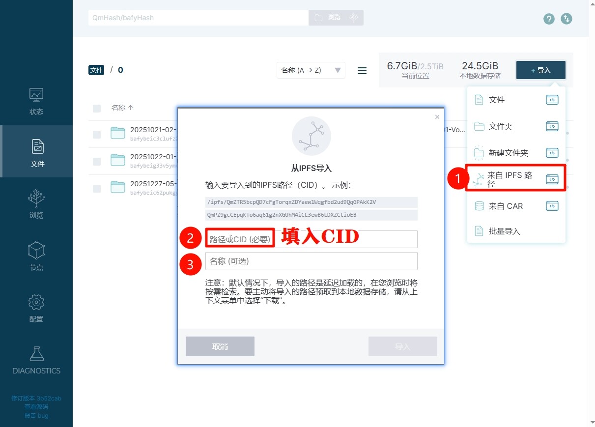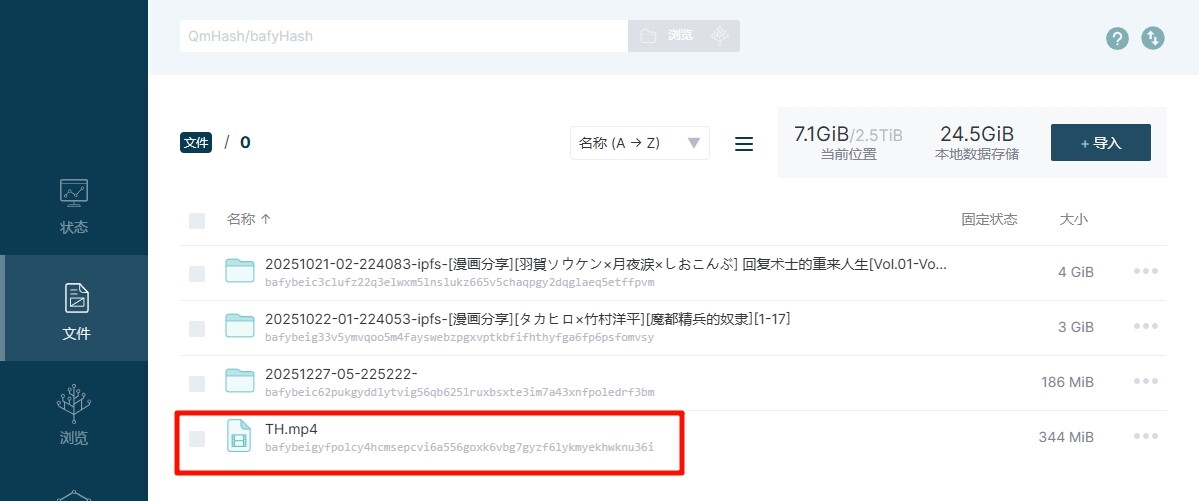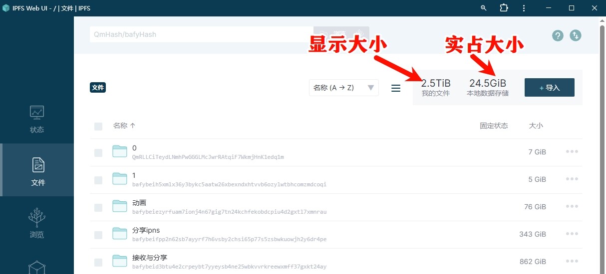 Q: 导入 CID 的时候不会读取文件名,需要自己重新命名。有没有批量处理的办法? A: 可以使用 IPFS 分享助手来完成导入,看本文 5.3 节 批量“转存”文件到本地 IPFS 节点 https://cangku.moe/archives/212530#heading-25 https://cangku.moe/archives/212530#heading-25