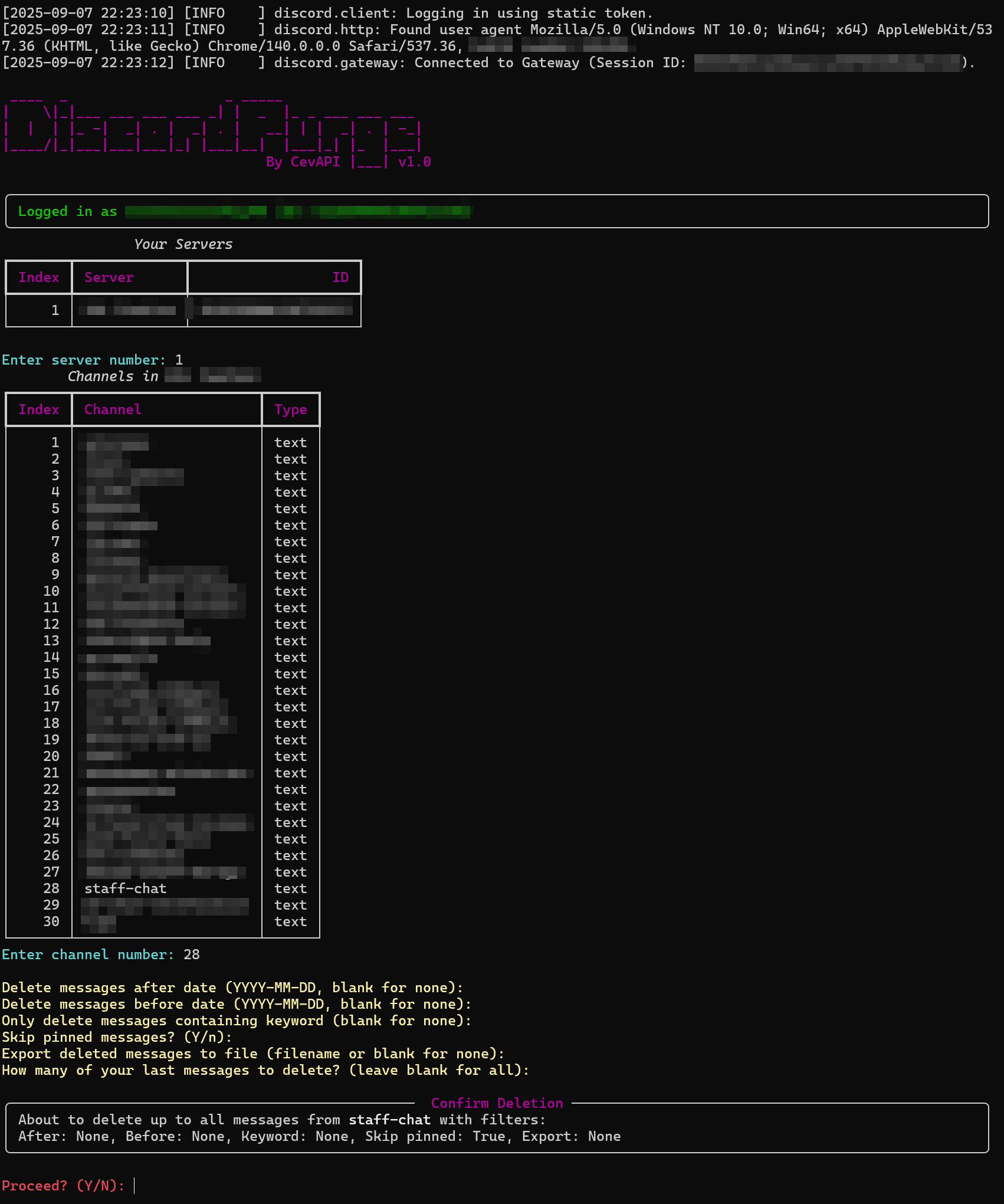 A professional, Rich-powered terminal app for browsing your Discord servers and channels, and bulk-deleting your own messages with advanced filters and amazingly advanced UI.