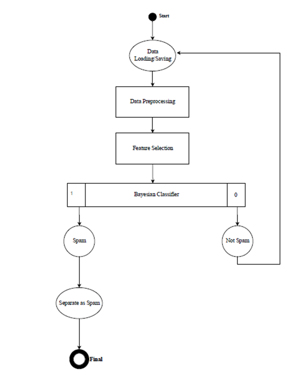 - A sample test array which contains random emails is checked for spam using the Bayesian classifier
