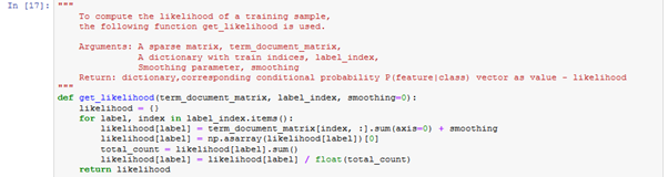 Created get_prior, get_likelihood and get_posterior methods. Created get_label_index, with labels as argument for saving labels.
