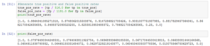 True positive and false positive counts are generated for the classifier by analysing the report by which true positive and false positive rates are computed respectively.