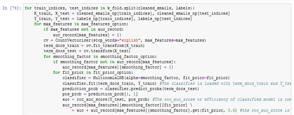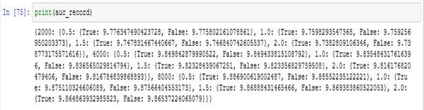 - Developed a model to train and test data for multiple features, smoothing factor and fit prior respectively. Generated a report auc_record