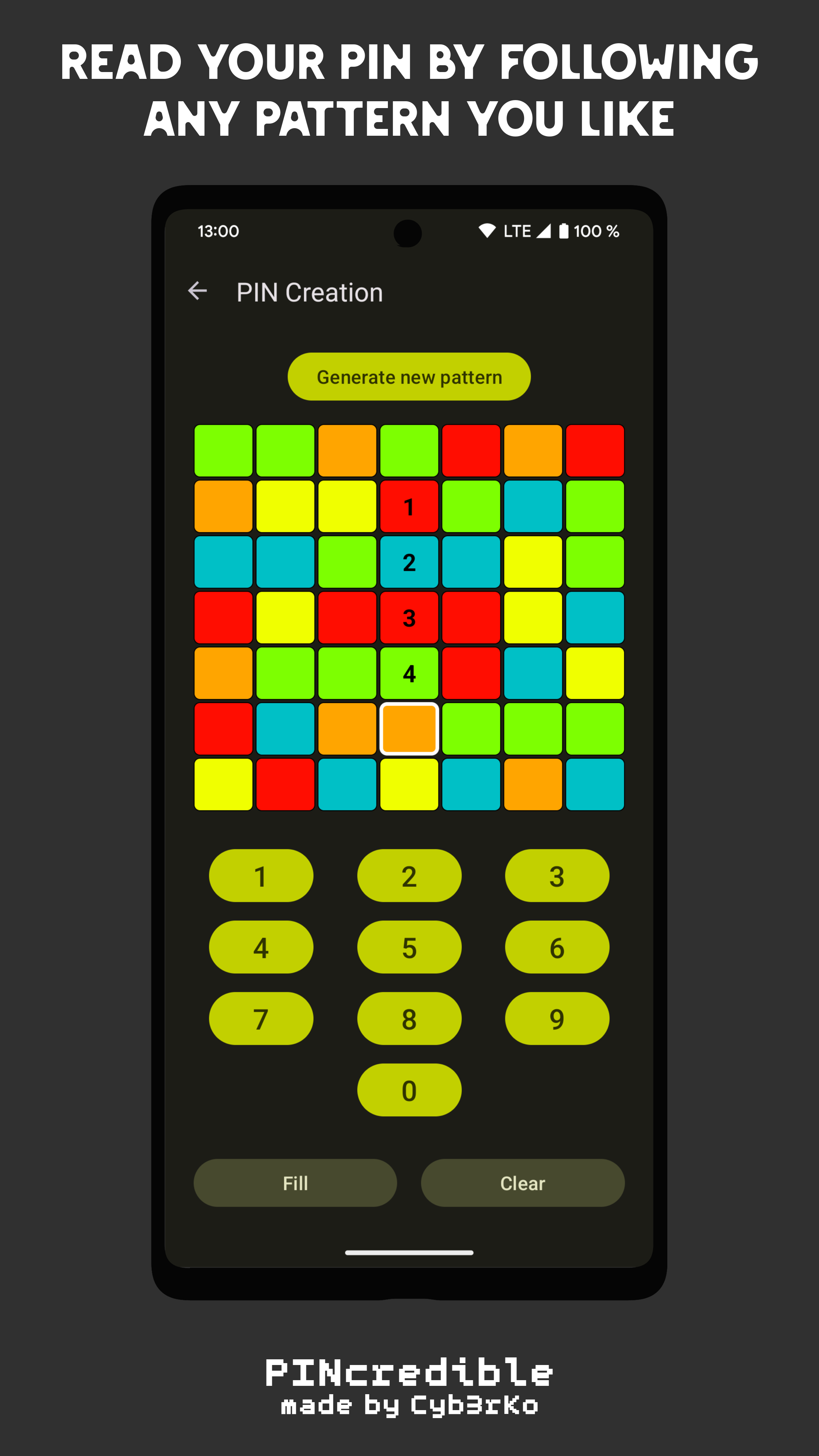 - fill in your PIN somewhere and fill the remaining empty cells (using SecureRandom provided by your device)