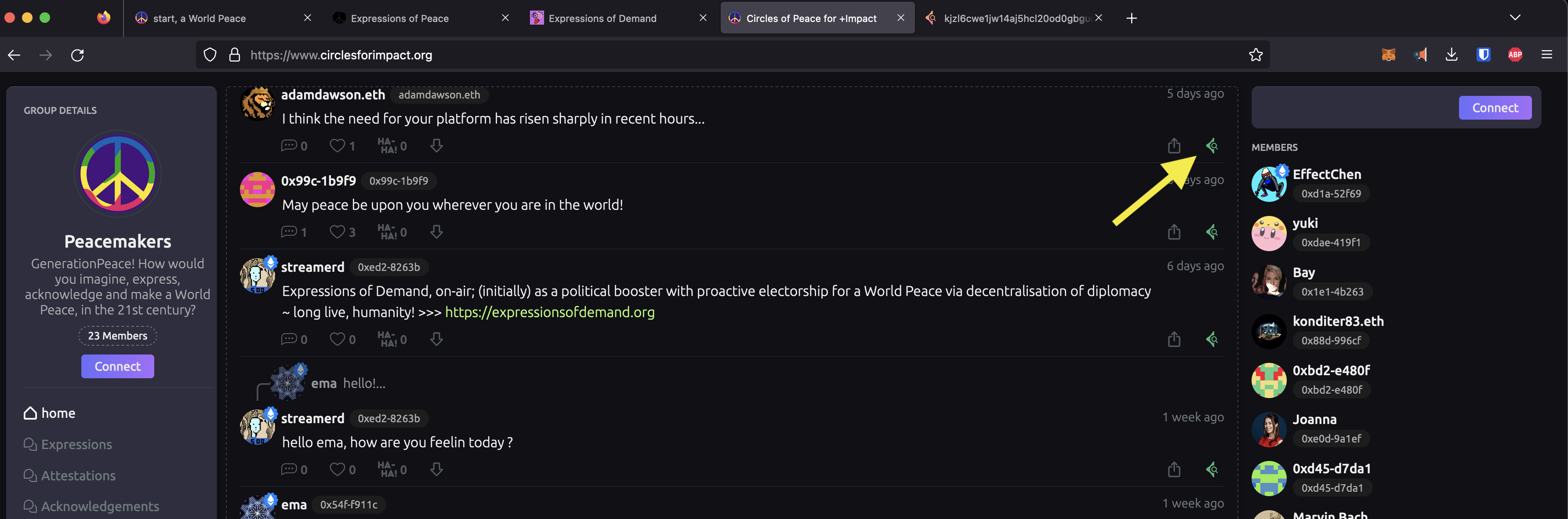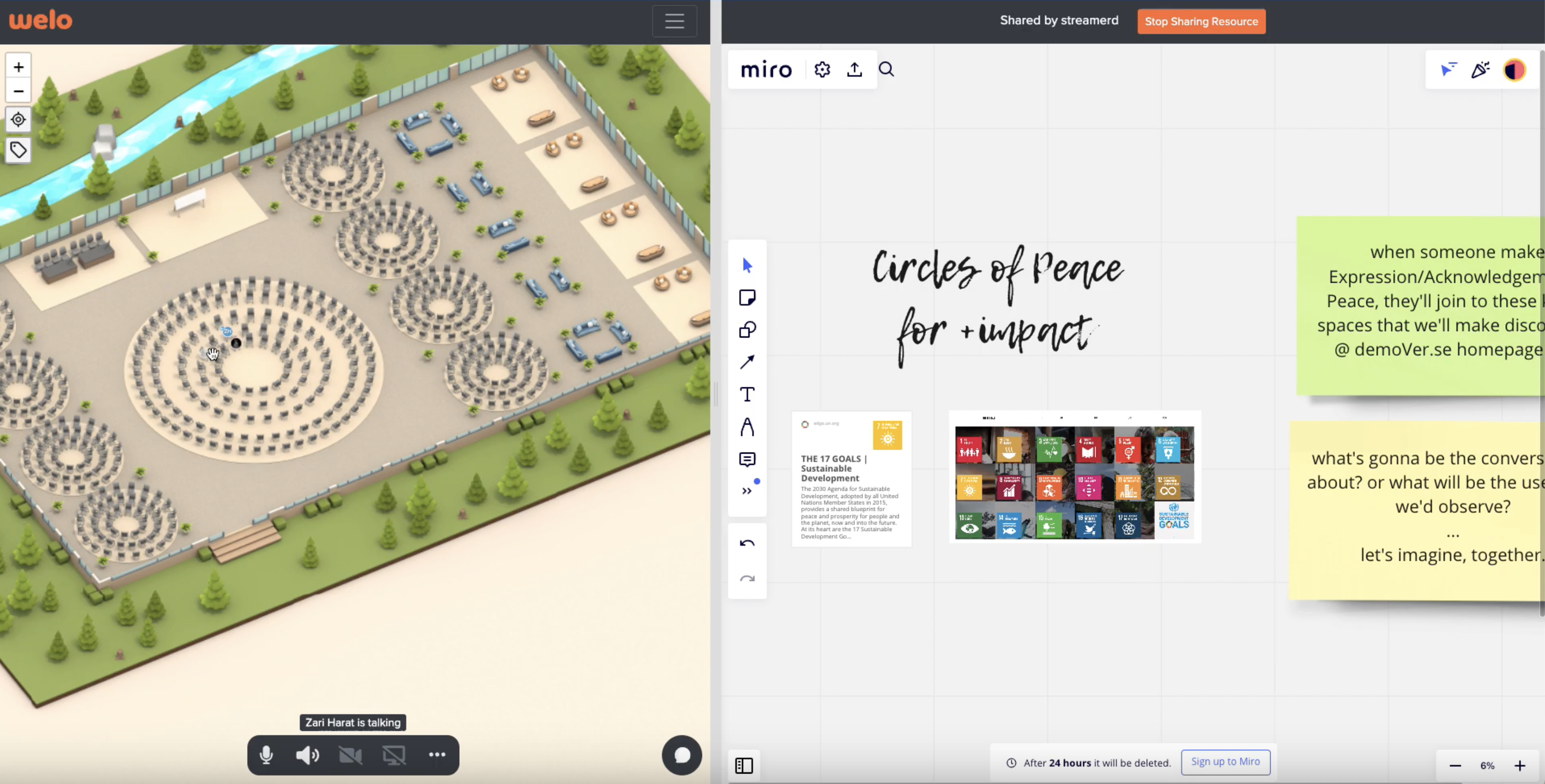 Peacemakers that have expressed and acknowledged peace through Circles of +Impact, and given that assurance, will be invited to virtual collaboration spaces based on causes they want to imagine and build solutions together, and get funded., eg. workadventu,re, welo.space and gather.town to start with.