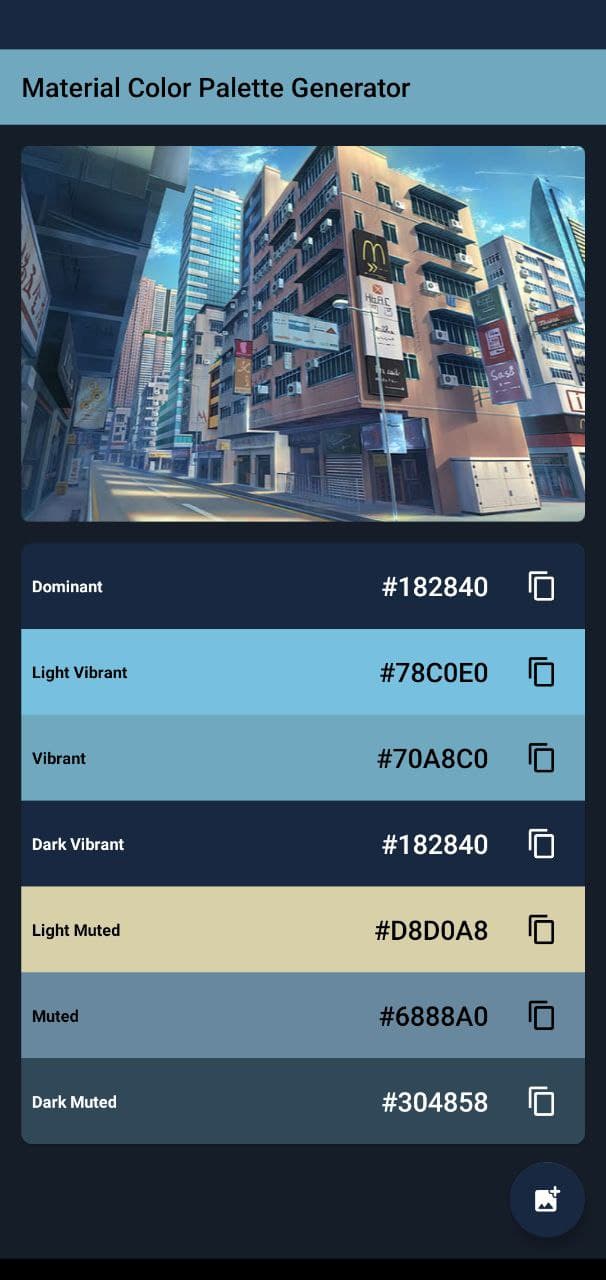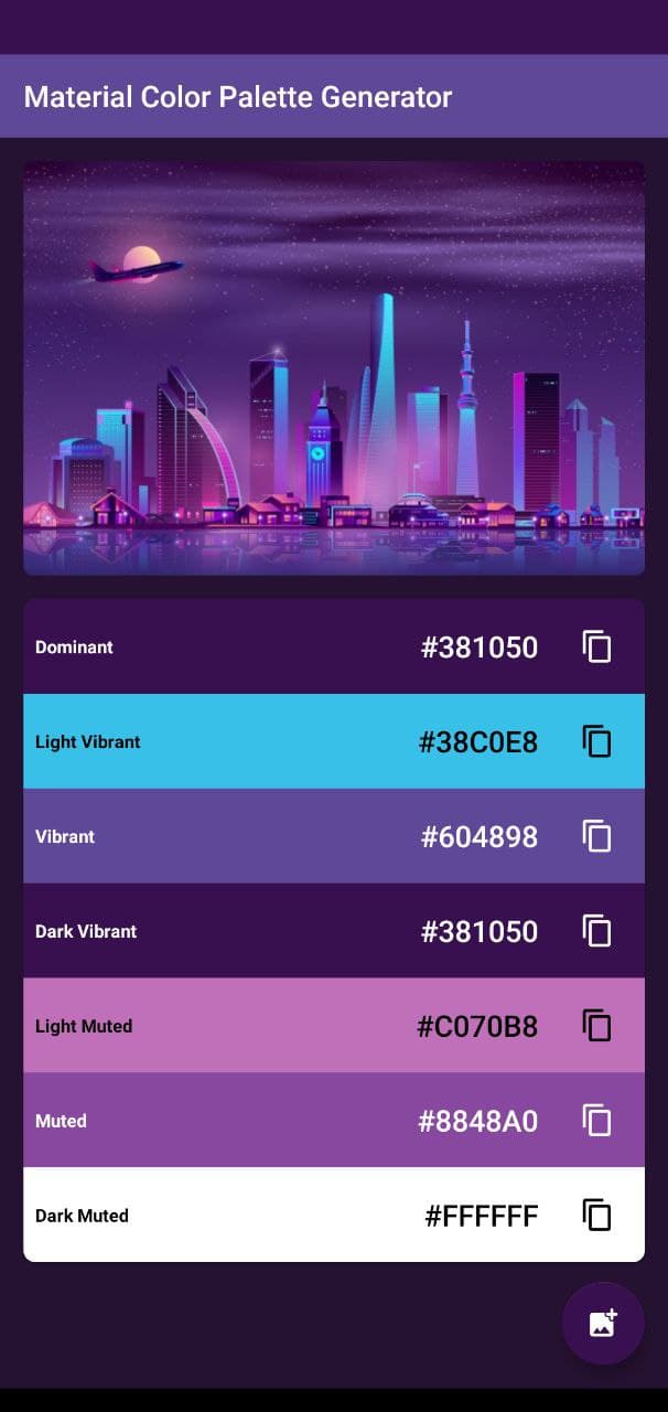 material-color-palette-generator Showcase app to generate color palette using Android Support Library Palette ScreenShot
