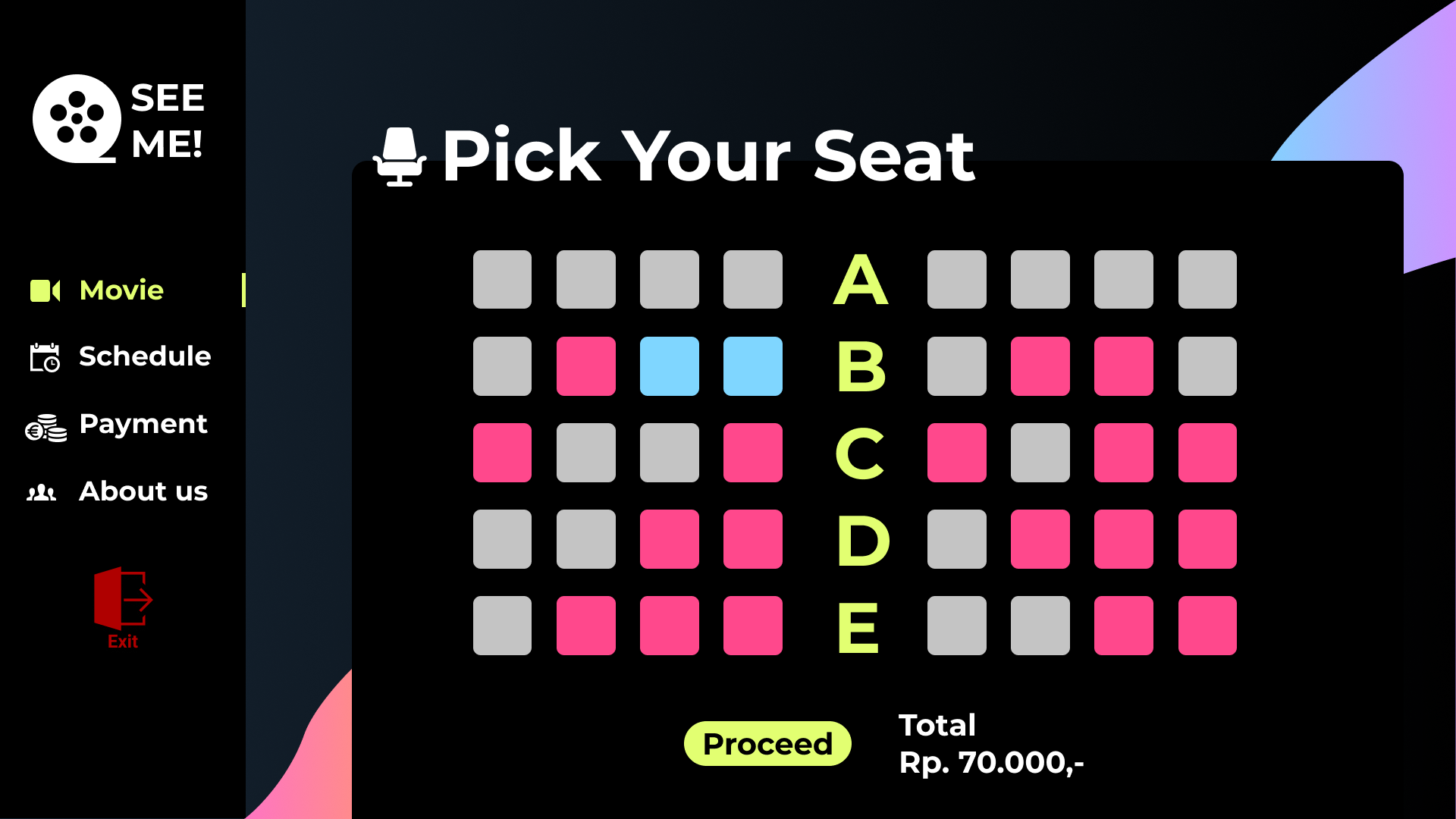 Halaman untuk pemilihan tempat duduk yang ingin dipesan.