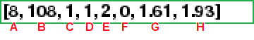 - D: Enemy's relation to the item Shield. Ranges from 0 to 2. If 0 the enemy doesnt care for the item, if 1 the enemy always reaches for the item as soon it enters the enemy's field of view and if 2, the enemy avoids the item, reverting its trajectory.
