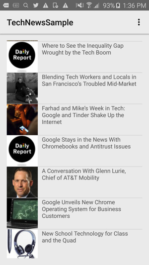 All the data is coming from the web endpoint. The response contains a list of news items as well as URLs to the pictures associated with each story.
