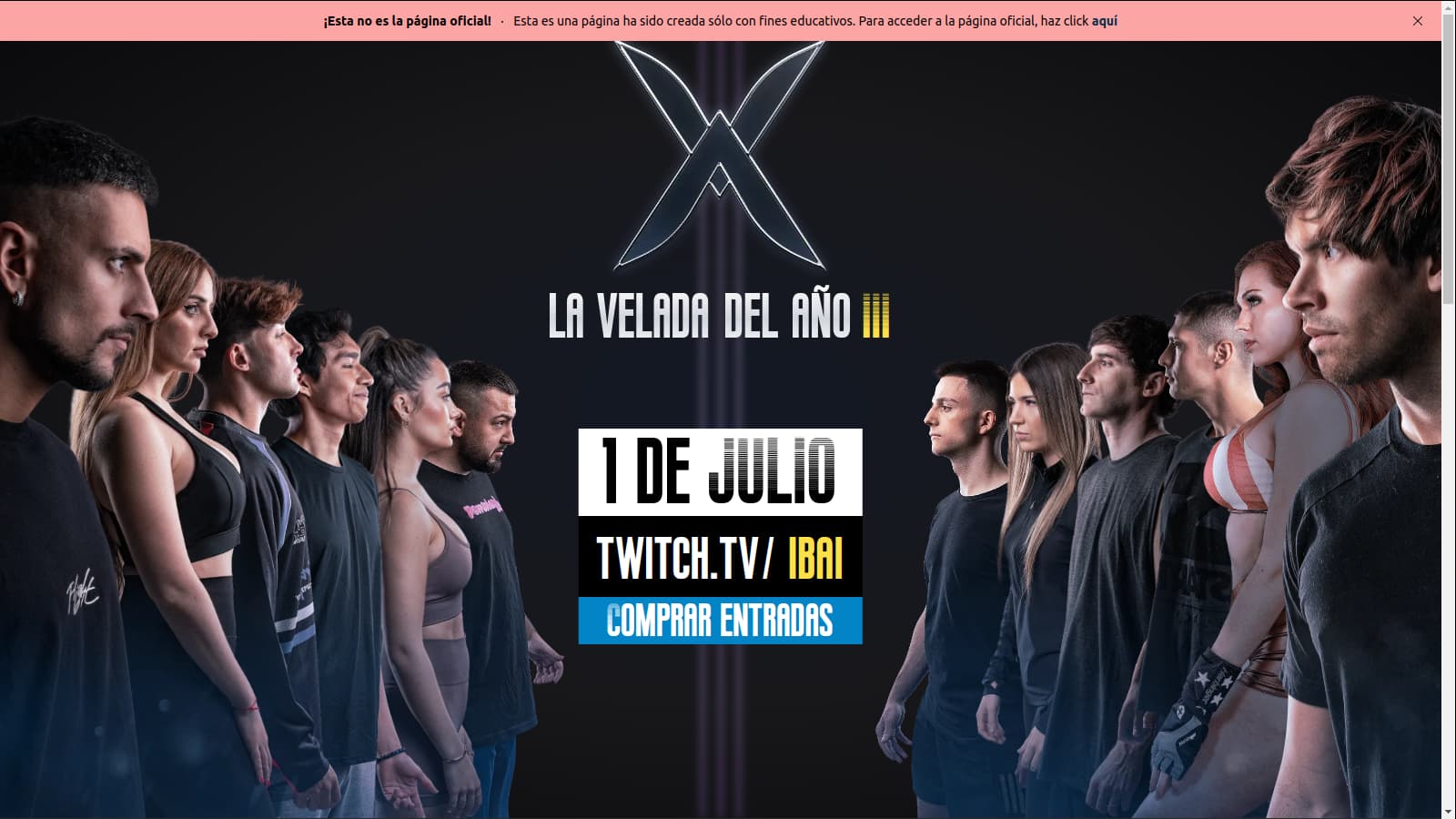 This is a landing page for La Velada, a boxing event organized by the well-known streamer Ibai Llanos.
