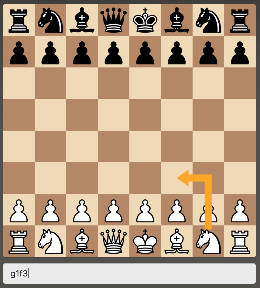 - coordinates notation: 'e2e4' ('e2 e4' and 'e2-e4' can be also used).