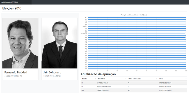 A princípio não tenho interesse para levar esse projeto a frente (que foi feito apenas para observar possíveis inconsistências nas eleições presidenciais brasileiras de 2018). O código pode ser otimizado e melhor trabalhado para trazer informações mais profundas e precisas já que os dados são obtidos e concatenados (ao invés de sobrepostos).