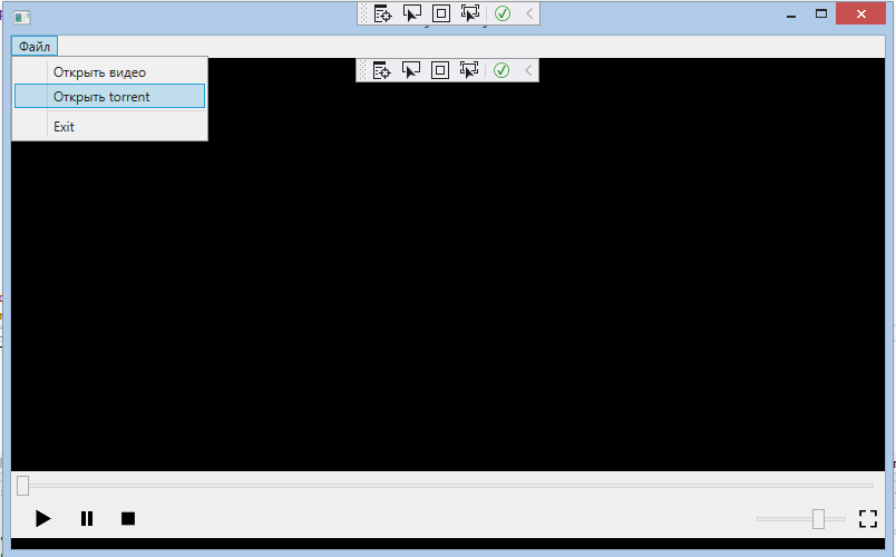 Использовать: Запустите приложение и выберите файл "Открыть видео" или .torrent "Открыть torrent"