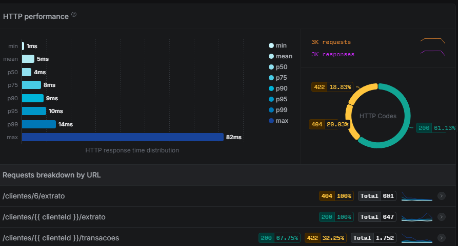 Rinha Backend 2024 Tema: Controle de concorrência créditos e débitos Stack que utilizei: Linguagem: Framework: BD: Load Balancer: Resultado Testes de carga feito com Artillery, você pode visualizar os cenários em test.yml, quantidade de vUsers, duração, etc