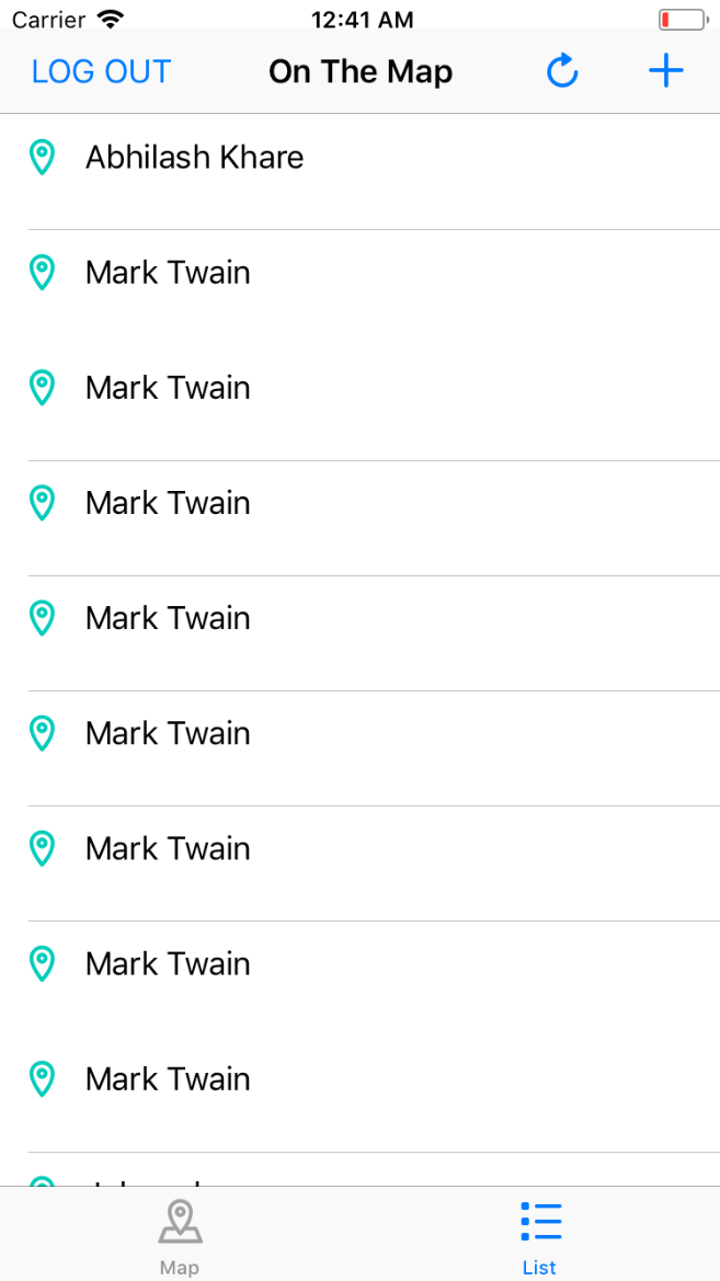 An iOS app that displays annotated pins and students information on a map and on a table view using Udacity and Parse RESTful APIs, Core Location and the MapKit frameworks. User can add their own data by posting a string that can be reverse geocoded to a location, and a URL