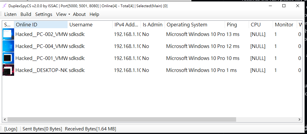 DuplexSpyCS (CS stands for CSharp) is a open source RAT base on C/S