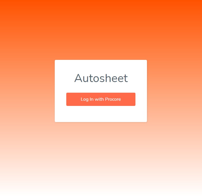 User authentication is handled by OAuth2 using Procore credentials. Once successfully authenticated, the user is routed to the Autosheet dashboard.