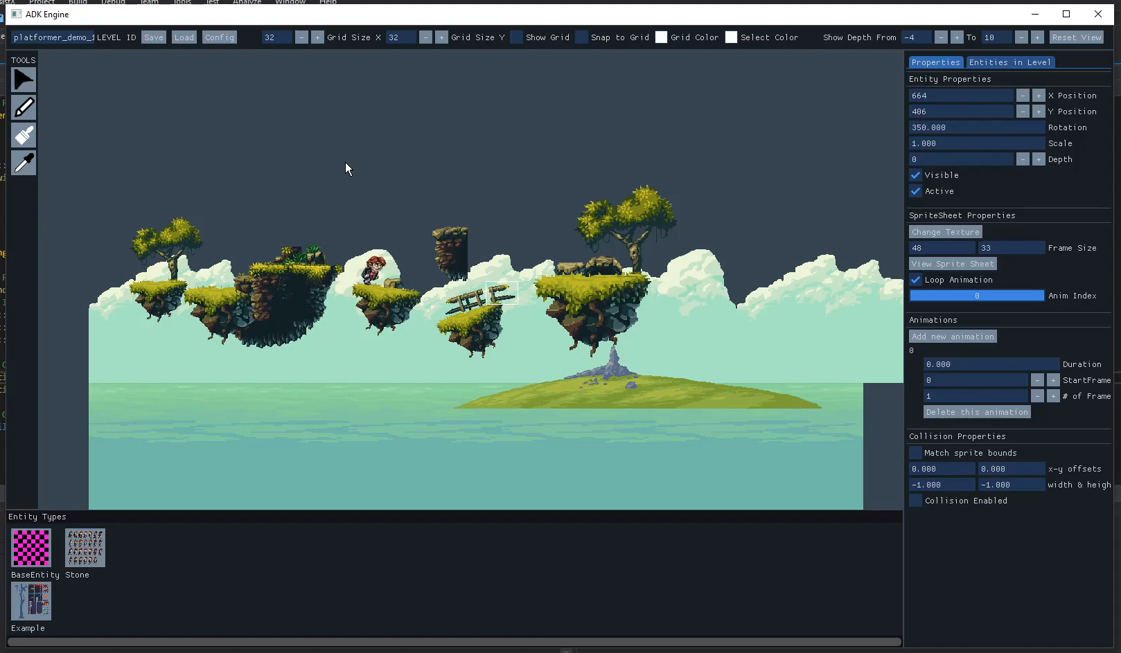 - Configure sprites, collisions, and animations all within the editor