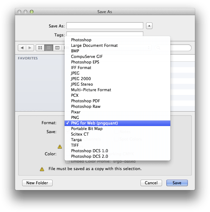 pngquant.pluginto/Applications/Adobe Photoshop C*/Plug-ins/. -