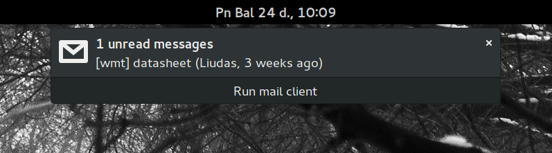 This is a simple program that displays desktop notifications for unread mail (or actually any search query) in the notmuch database. The notification can optionally have a button to run a mail client.