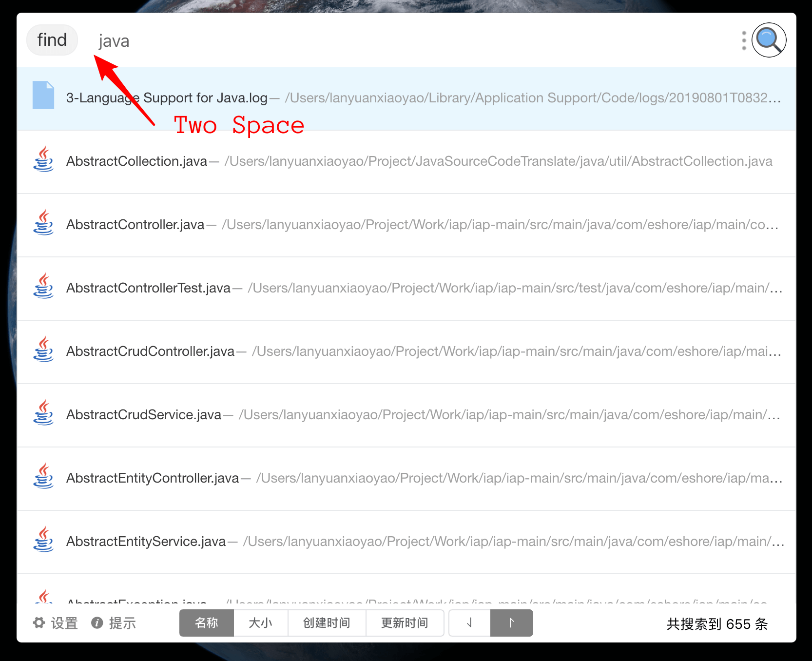 仅搜索文件只需要在输入框最前面加上两个空格