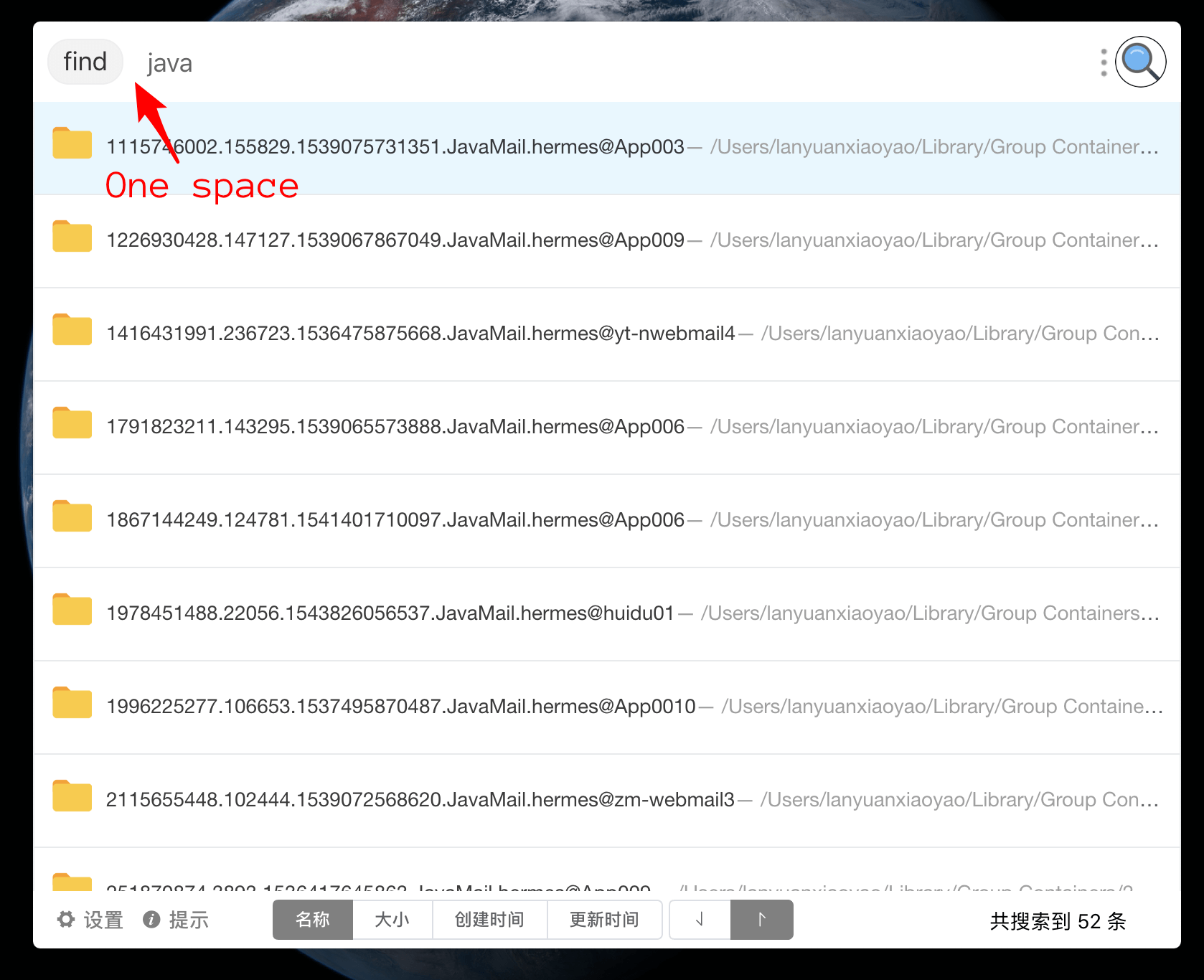 f和F关键词 仅搜索文件夹只需要在输入框最前方加上一个空格 仅搜索文件只需要在输入框最前面加上两个空格 以上两种过滤可以和自定义快捷搜索组合使用