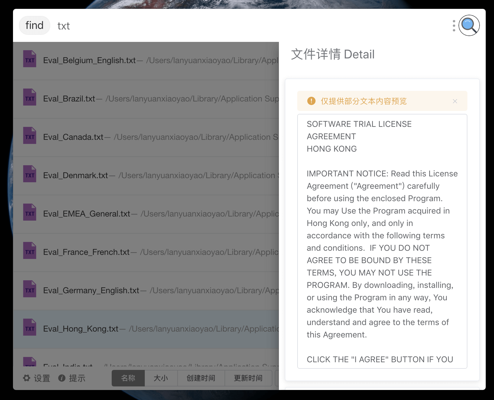 - 预览 增加文本文件, 图片和文件夹的内容预览, 方便直接浏览文件内容确定要找的文件