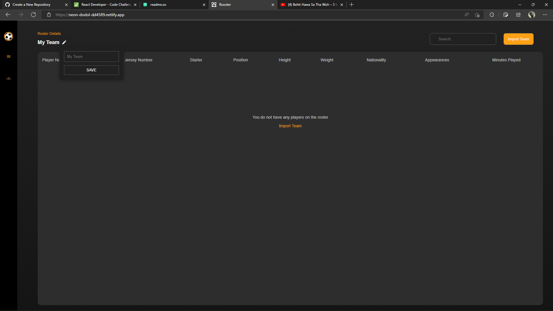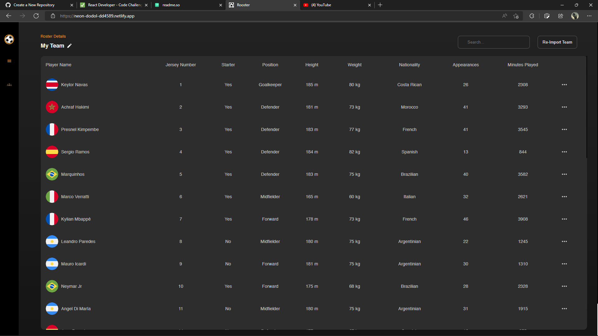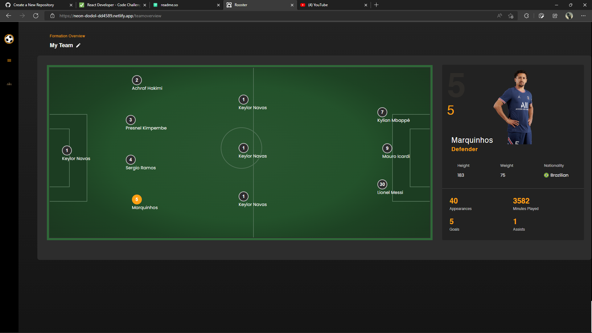It's a football management website. You must have to use a CSV file to show data. If the CSV file doesn't have a value of the property the error will be shown in the UI. You can edit players and also can delete players. Users can also see the player details.