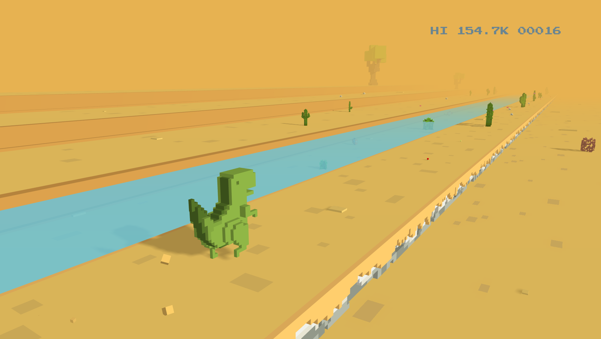 T-Rex Run 3D ist ein, als Experiment erstelltes, ThreeJS WebGL-Spiel.