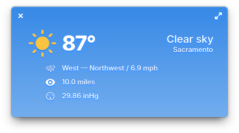 See the current temperature and weather conditions for your location with this minimal color-changing applet.