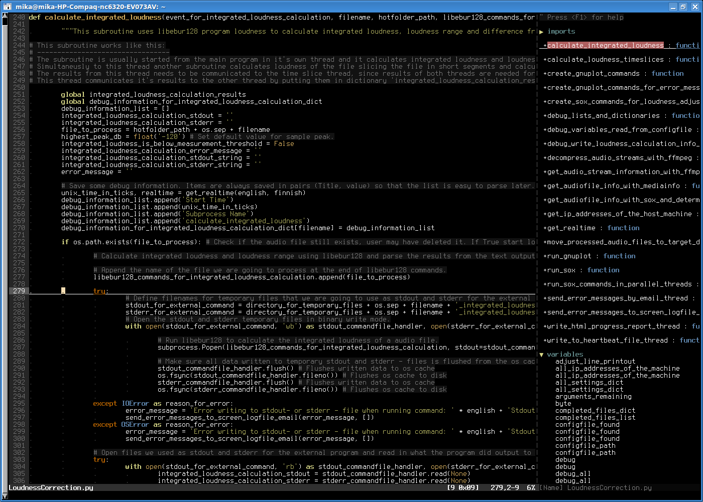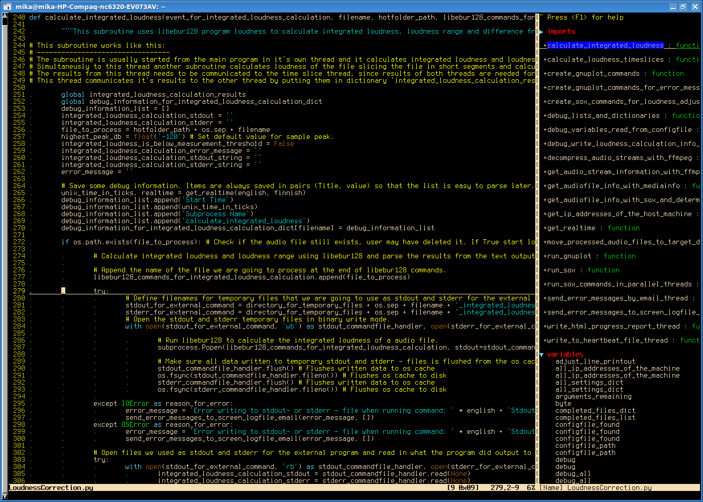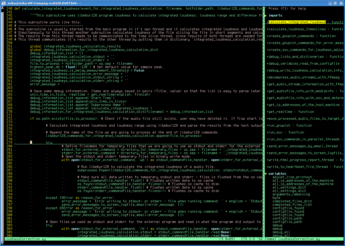Show subroutine definition with F10Vim-Gitgutter shows what lines you have changed since committing that file to git (display refreshes every 4 seconds).